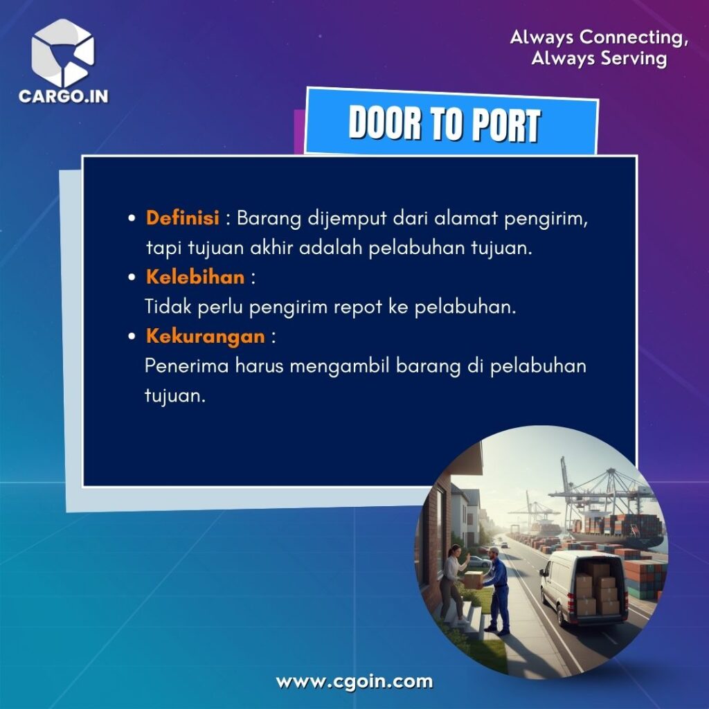 Setiap pengiriman kargo memiliki karakteristik dan rute yang berbeda. Memahami empat metode utama yaitu door to door, door to port, port to door, dan port to port bisa membantumu memilih cara yang paling efisien untuk mengirim barang.