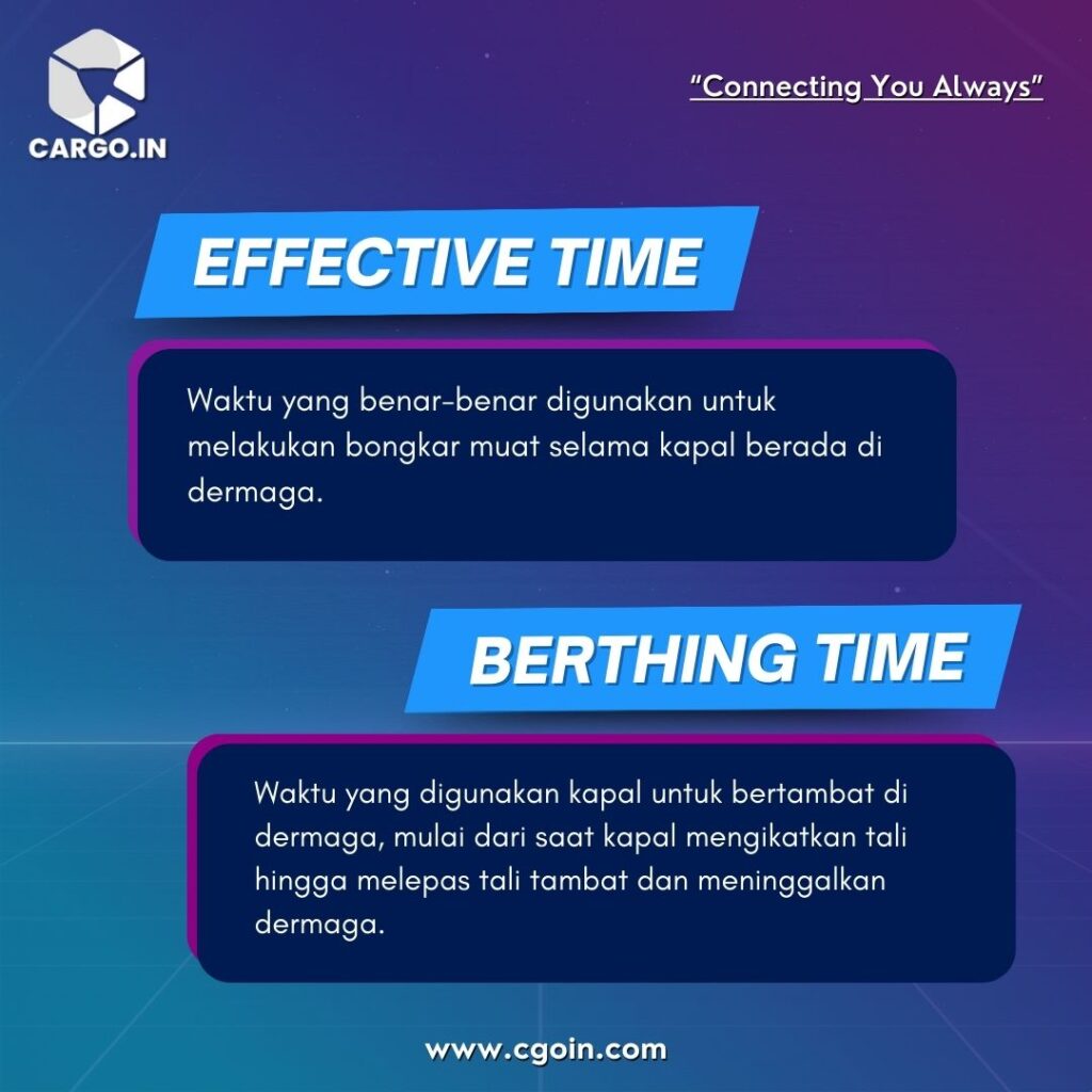 Dua di antaranya adalah Effective Time dan Berthing Time, yang punya fungsi penting untuk menggambarkan penggunaan waktu kapal selama berada di pelabuhan.