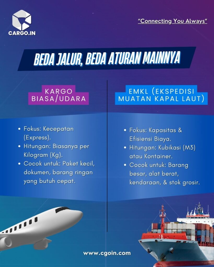 Masih bingung bedanya EMKL sama kargo reguler? Simak penjelasannya di slide postingan ini 👉