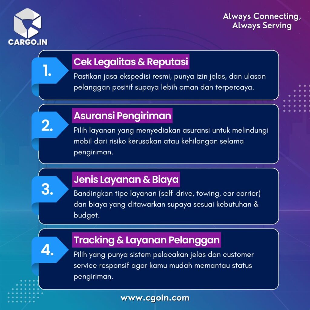 Mengirim mobil lewat layanan kargo bukan perkara sepele. Ada banyak hal yang harus diperhatikan agar kendaraan sampai tujuan dengan aman dan tepat waktu. Karena itu, penting untuk tahu cara memilih jasa pengiriman mobil yang tepat.